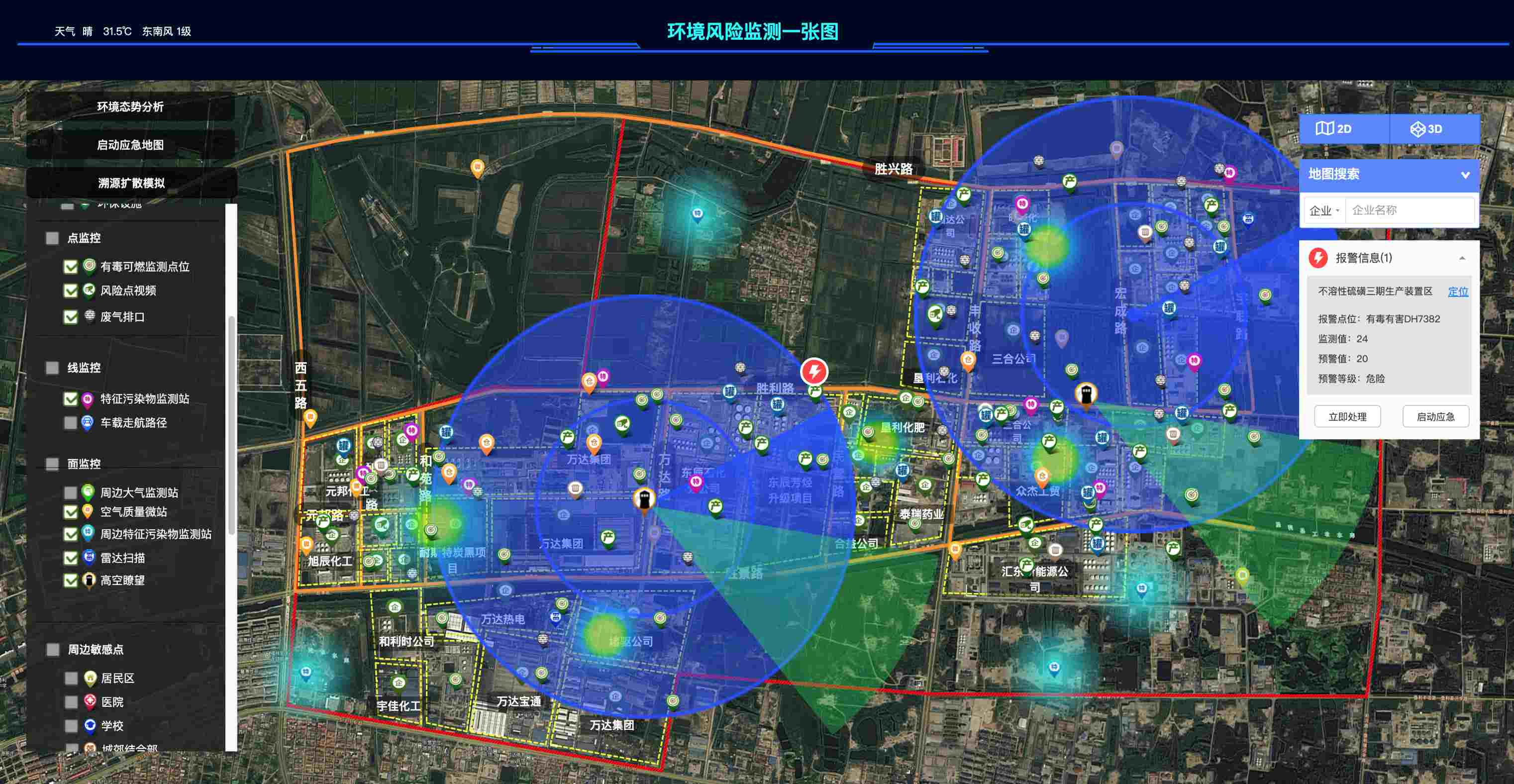 隨著化工企業“退城入園”政策的推進,化工園區日益成為危險化學品、有毒有害物質主要的聚集地。尤其部分化工園區在發展中還存在著規模體量小、園區功能定位不明確、主導產業不突出甚至還存在低水平重復建設、同質化現象明顯、管理水平參差不齊、有毒有害氣體監測裝置利用率低、監測裝置損壞、報警裝置無輸出等問題,安全生產與環境風險隱患較為突出,一旦發生泄漏、火災、爆炸等安全生產事故,極易產生“多米諾骨牌”效應,不僅造成生態環境破壞,而且給企業、園區及周邊敏感目標造成重大傷亡和巨大財產損失。 為深入貫徹習近平生態文明思想,認真落實省委省政府《山東省貫徹落實〈關于構建現代環境治理體系的指導意見〉的若干措施》、山東省生態環境廳、工信廳《關于印發全省化工園區有毒有害氣體環境風險預警體系建設工作方案的通知》、生態環境廳全省化工園區環境風險預警體系建設工作推進視頻會的工作部署,我公司結合自身特點打造了有毒有害氣體環境風險監控預警管理系統。