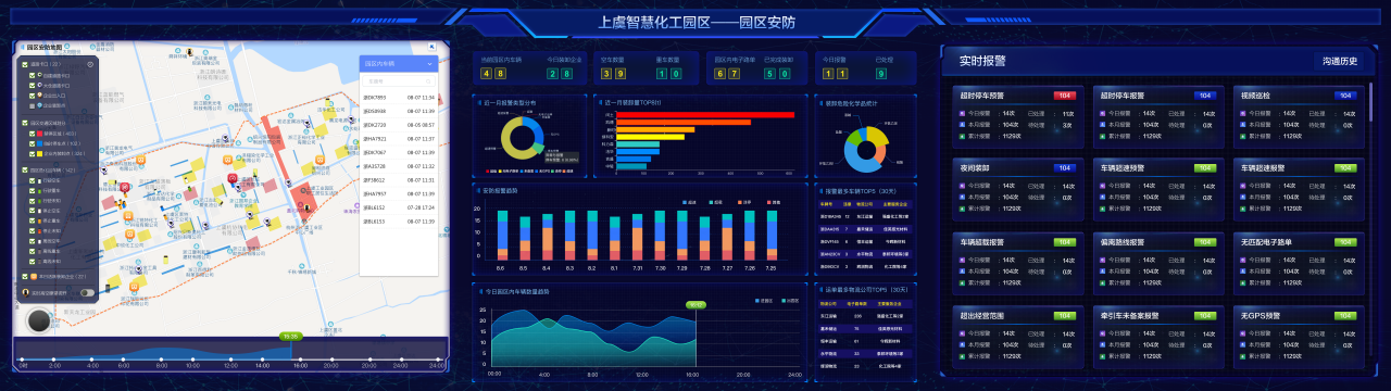 園區封閉管理系統結合人員、車輛定位數據、電子圍欄、園企卡口道閘、視頻監控等,實現在園區管理范圍內對出入園區的人員、車輛等流動性因素進行控制管理,為園區內企業提供安全服務,實現對入園車輛從預約入園、卡口管控、園內車輛監管、企業安檢,全流程、實時、動態的園企協同監管模式。 封閉化管理系統對出入園區的各類車輛、人員和重要區域的統計分析和管理功能。 包括周界封閉及防入侵系統、封閉管理門禁/卡口系統、封閉化園區綜合監控系統(危險物品車輛運輸監管系統、視頻監控系統、應急廣播系統、無線對講通訊系統、園區智慧巡檢系 統、出入園區管理系統等)、園區“一張圖”地理信息系統(GIS)等等。