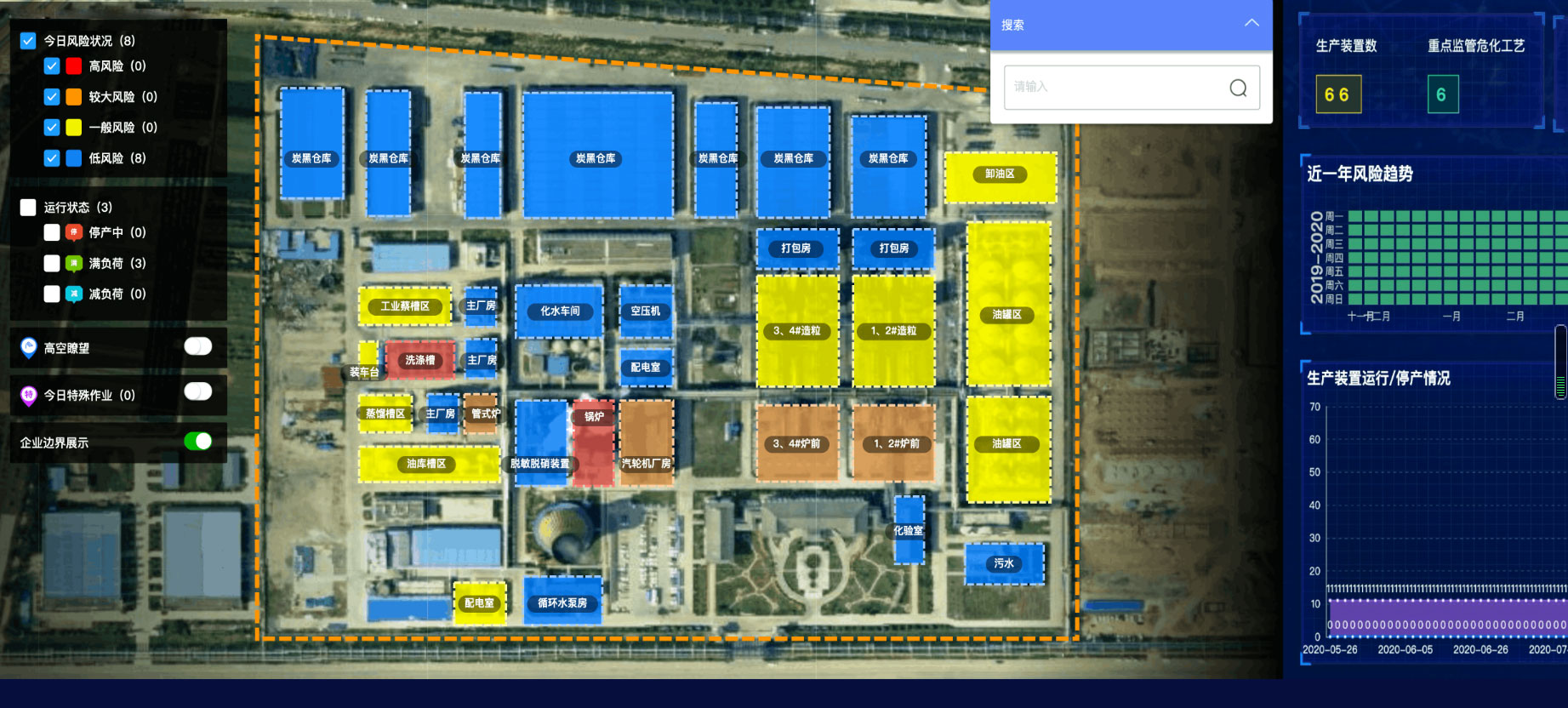 建設集重大危險源監控信息、可燃有毒氣體 檢測報警信息、企業安全風險分區信息、生產人員在崗在位信息和企業生產全流程管理信息等于一體的安全生產信息化管理平臺。